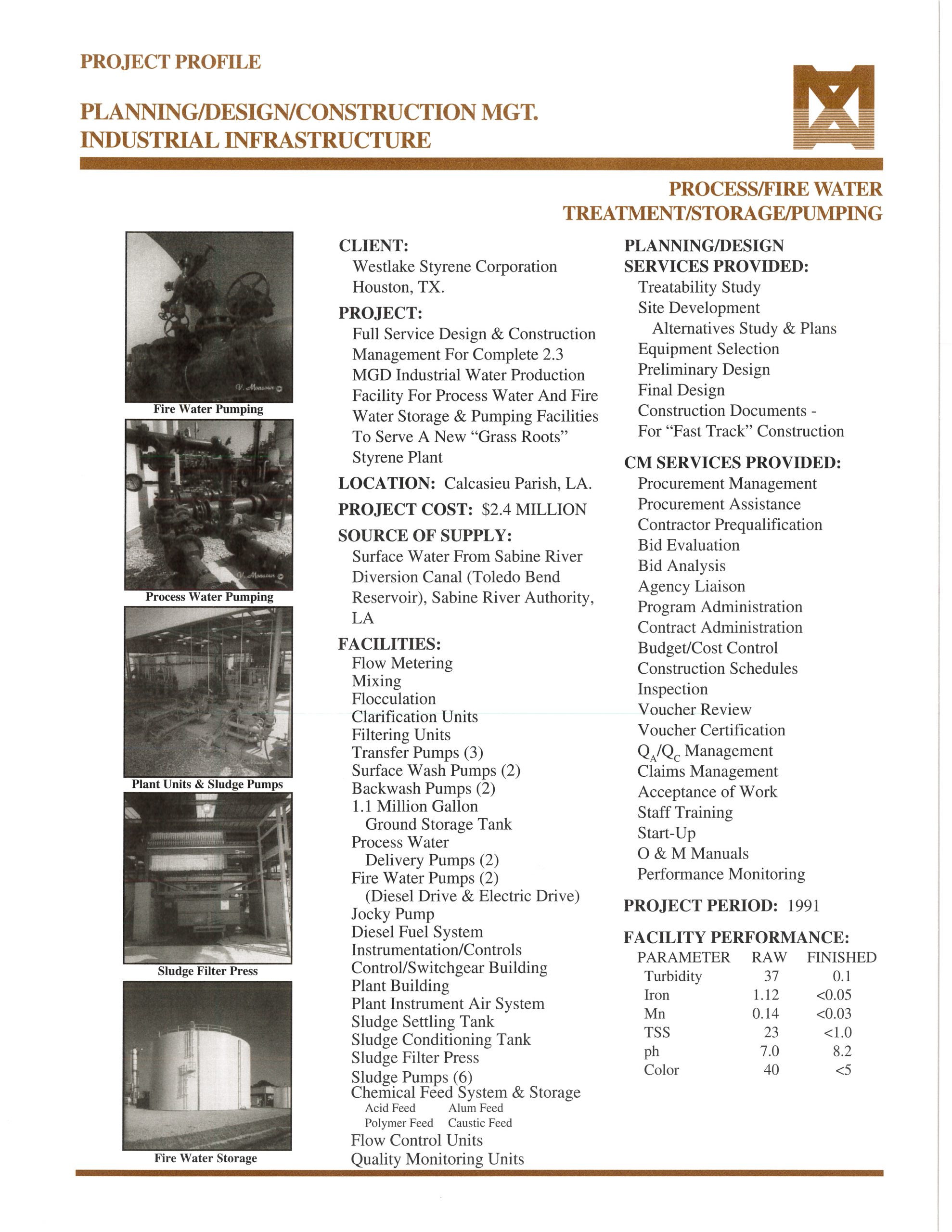 Projects Profiles \ Calcasieu Parish \ Westlake Styrene Proccess/Fire Water Treatments/Storage/Pumping (1991)